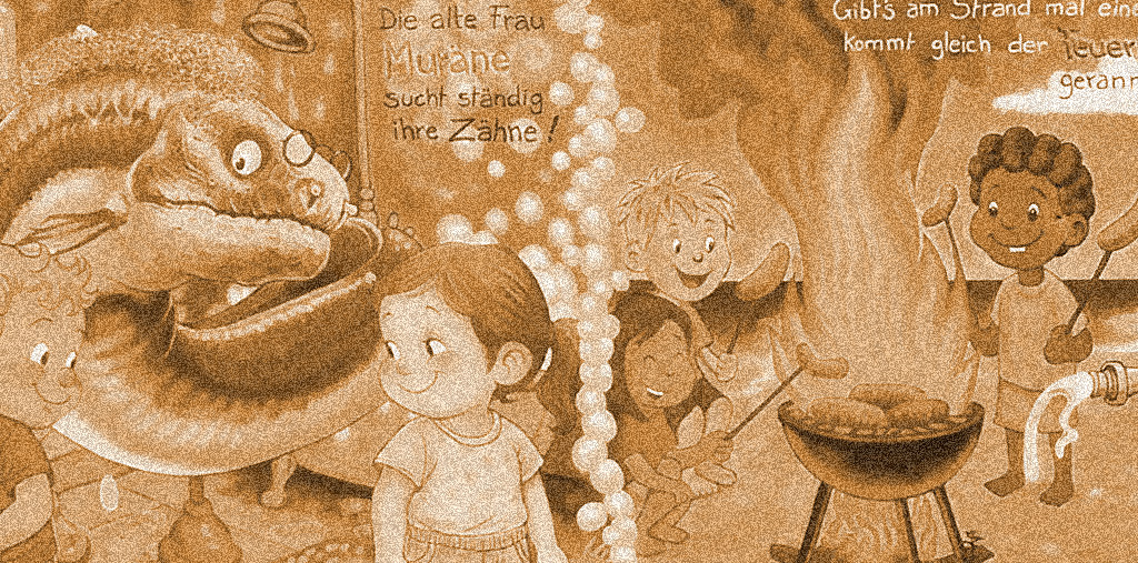 Wieder mal ein großes Projekt…Ca. 150qm Gesamtfläche galt es im Außenbereich des neu gebauten Spieser Kindergartens zu bemalen. Das Motiv? Ein von mir gestaltetes Kinderbuch!Die Wandmalerei ist nun sozusagen ein „begehbares“ Kinderbuch, das auf phantasievolle Weise die Interaktion zwischen Kindern und Fischen thematisiert. Warum ausgerechnet Fische? Nun, diese kann man wunderbar aus ihrem naturgegebenen Umfeld…